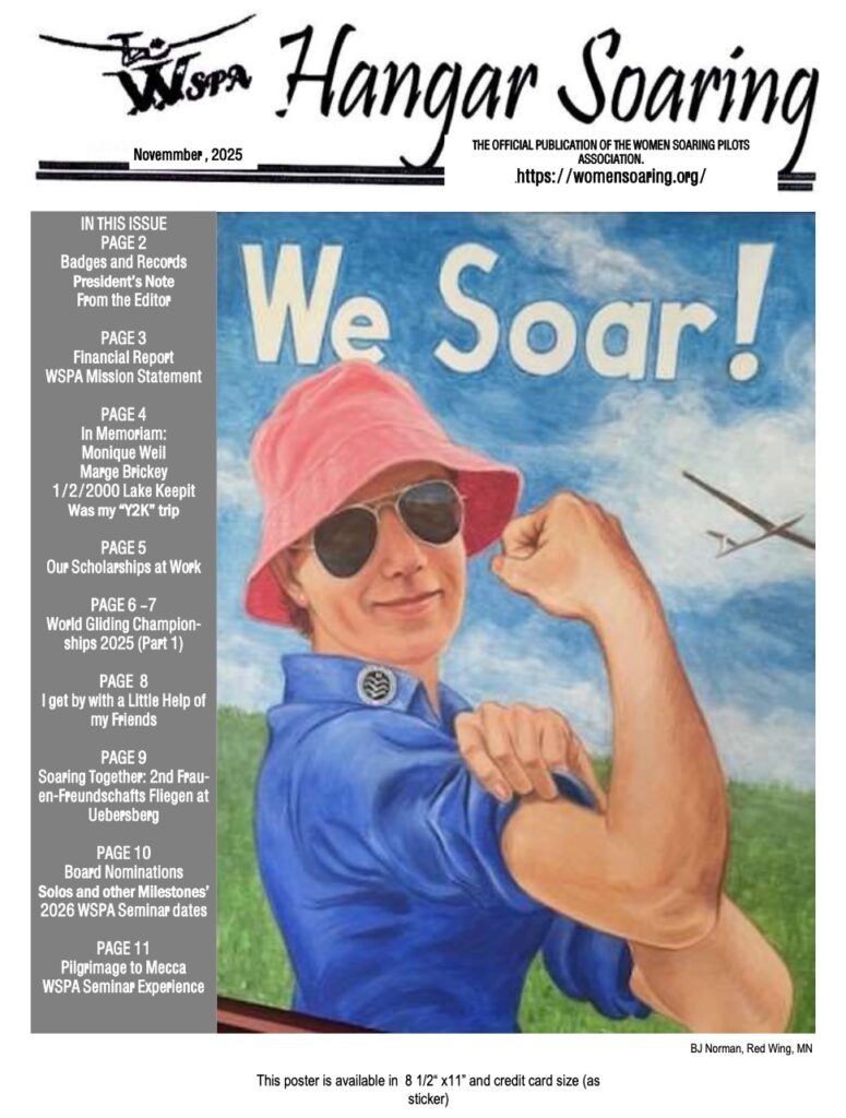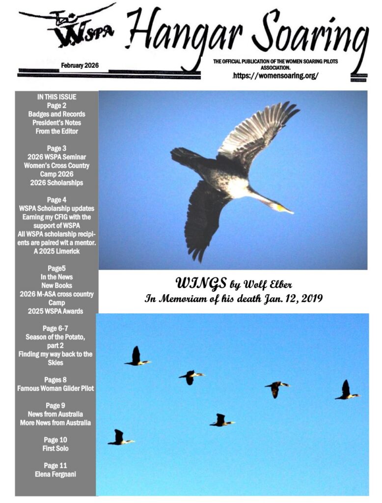 Frauke Elber is WSPA’s editor for the Hangar Soaring newsletters published four times a year. We all really appreciate her many years of work in this position, and the interesting content she shares. Thank you Frauke!